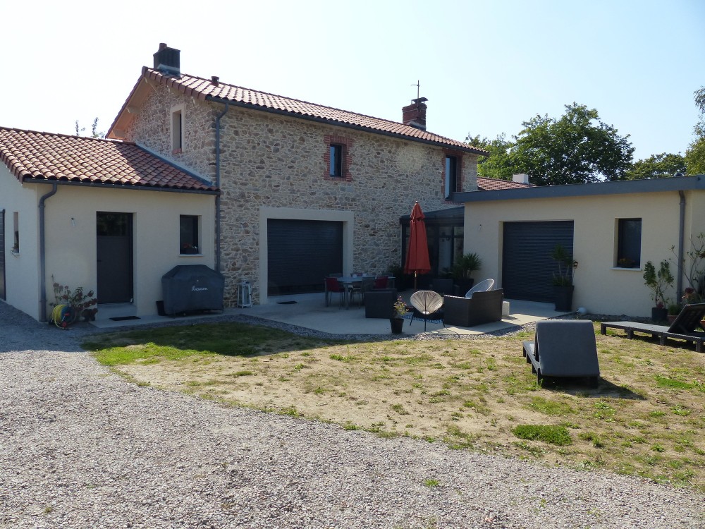 Détails : maison en pierres entièrement rénovée avec extension devant cuisine et arrière pour chambre parentale
