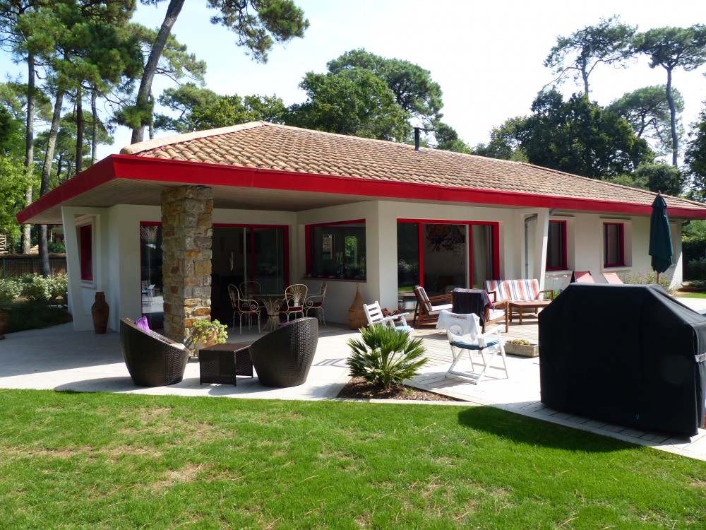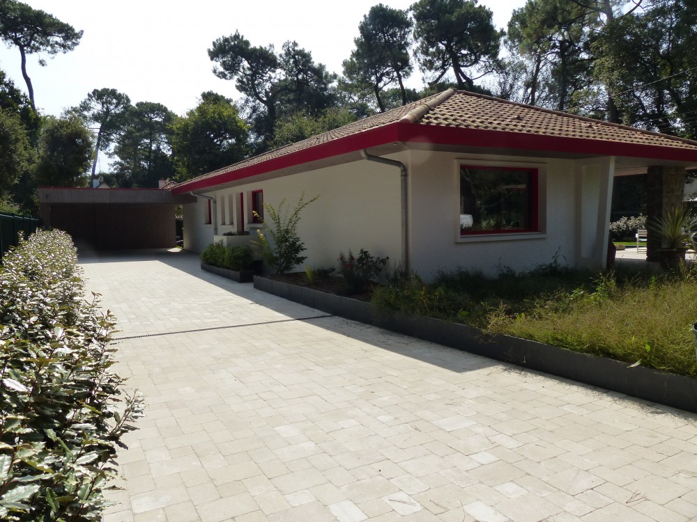 Surface habitable : 128.56 Réaménagement intérieur pour cette jolie maison avec ses ouvertures rouge flamboyantes